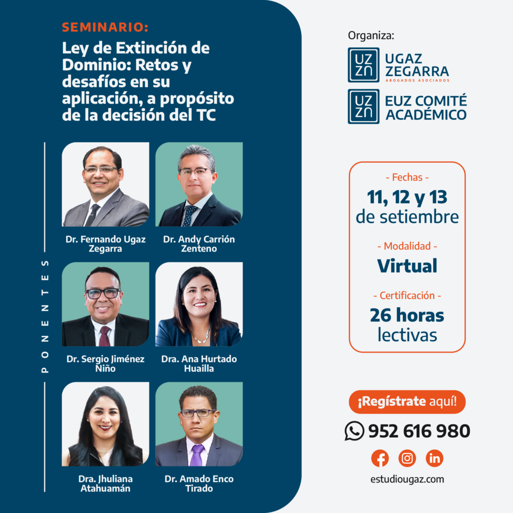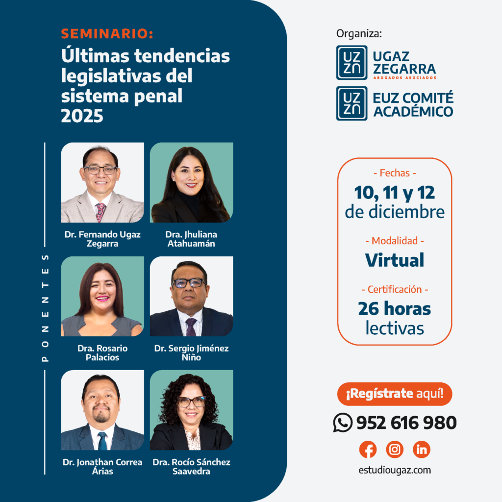 Al concluir con éxito el Seminario Internacional “Derecho e Inteligencia Artificial: Retos para el Perú y Escenarios Internacionales”, los participantes recibirán un certificado de participación otorgado por el EUZ Comité Académico y Estudio Ugaz Zegarra & Abogados Asociados. Este certificado, que se entregará en formato digital y físico, validará la asistencia y la dedicación a un programa académico integral de 24 horas lectivas, respaldado por expertos en la materia.